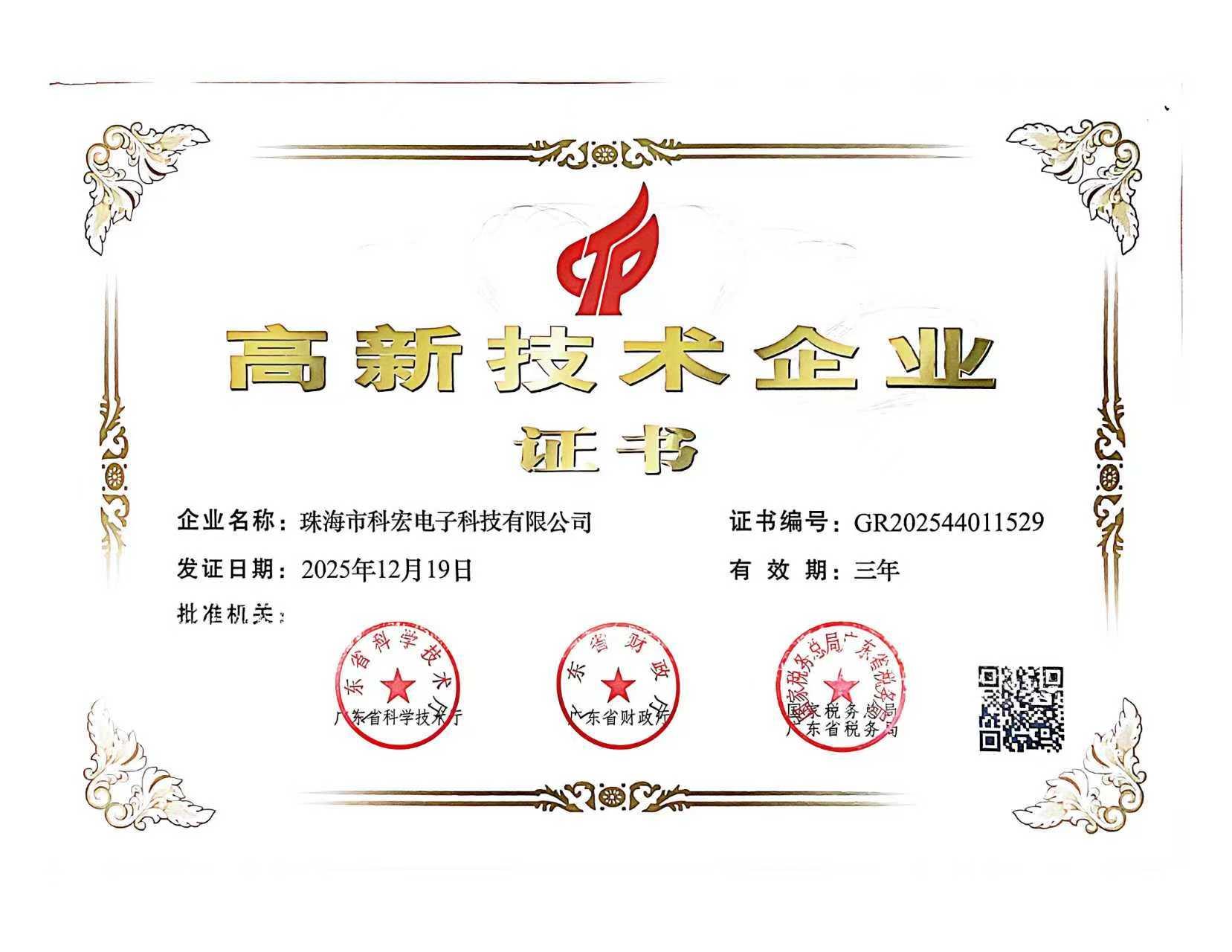 【喜訊】珠海科宏再獲高新技術(shù)企業(yè)認證!以硬核科技驅(qū)動創(chuàng)新發(fā)展